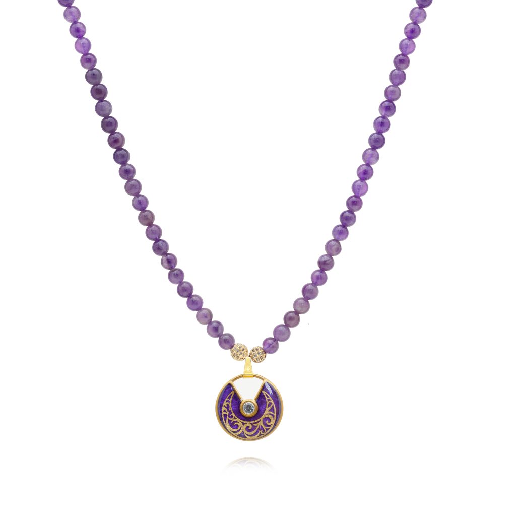 گردنبند گرد تک نگين آميتيست ويولا