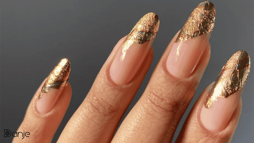 ورق طلا روی ناخن ؛ دیزاین خاص برای ناخن
