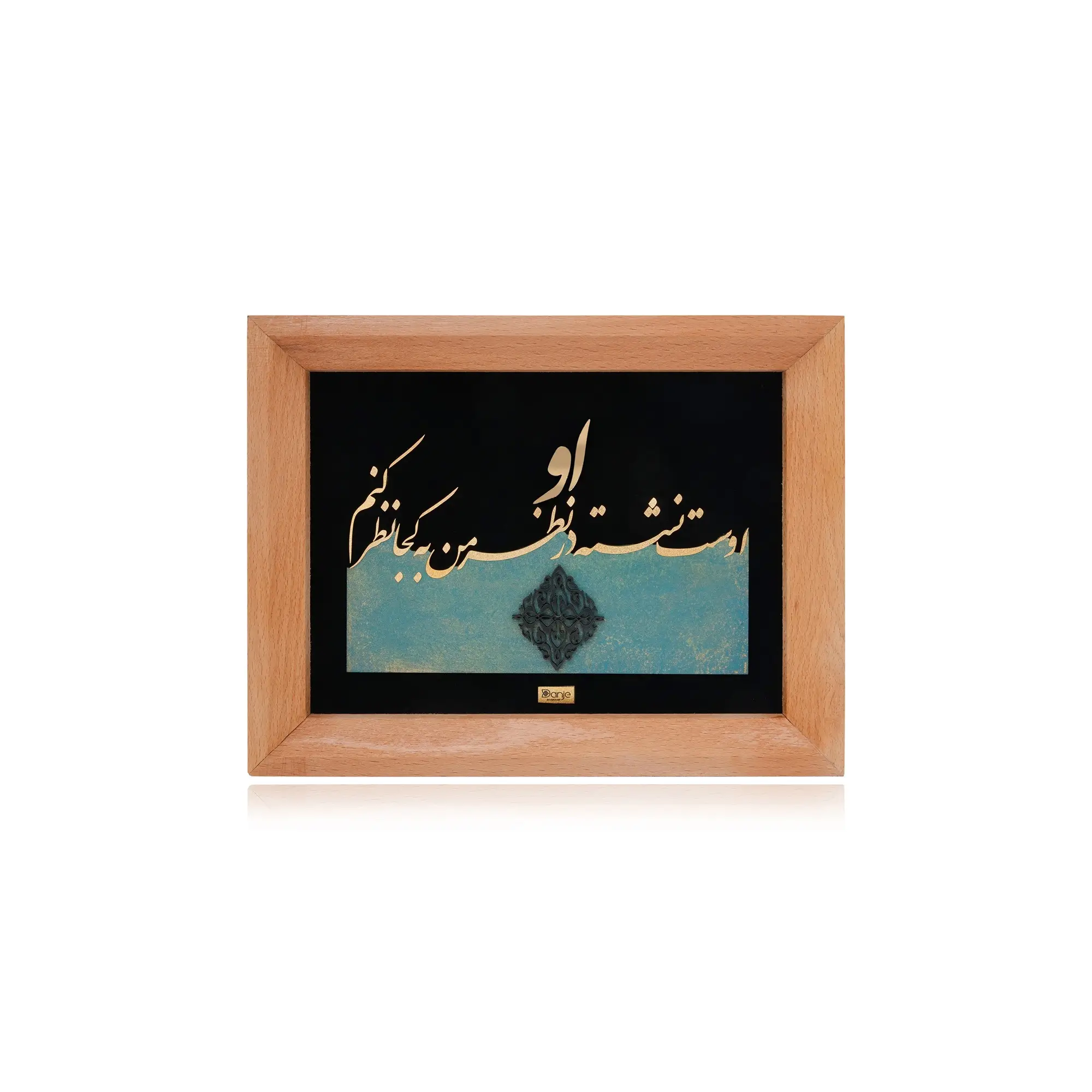 تابلو، با ترکیب چوب راش، پتینه، لیزر، شعر و ورق طلا، نهفقط یک اثر دکوراتیو، بلکه تجربهای از معنویت ایرانی است؛ تجربهای که در سکوت قاب جاری میشود و در دل بیننده، زمزمهای از یاد خدا را زنده میکند.